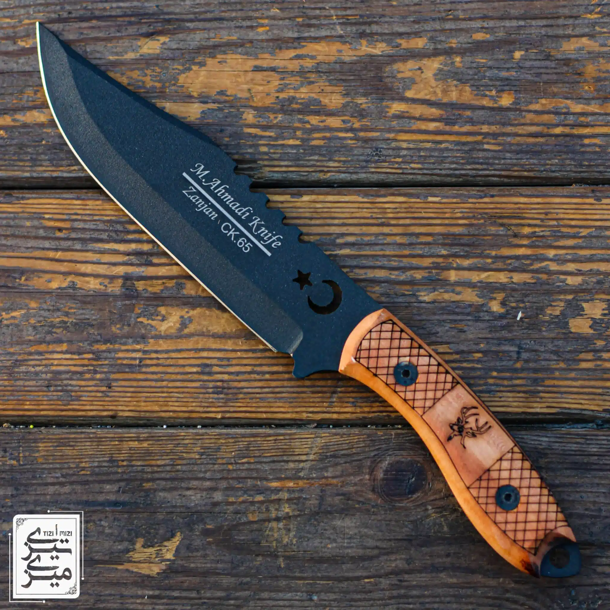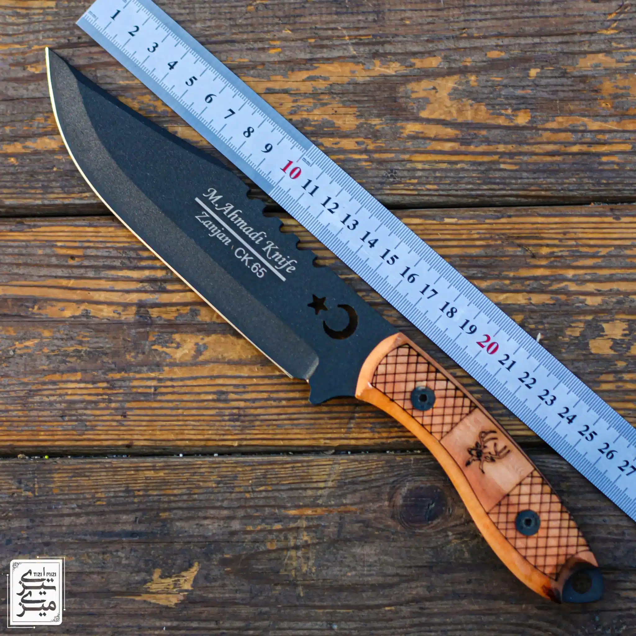 تیغه از فولاد ضدزنگ ساخته شده که در برابر ضربه، سایش و زنگزدگی مقاومت بالایی دارد. برندگی آن پایدار بوده و برای کارهای سنگین شکار و طبیعتگردی ایدهآل است. روی تیغه، نقش ماه و ستاره حکاکی شده که جلوهای منحصربهفرد به آن میدهد.