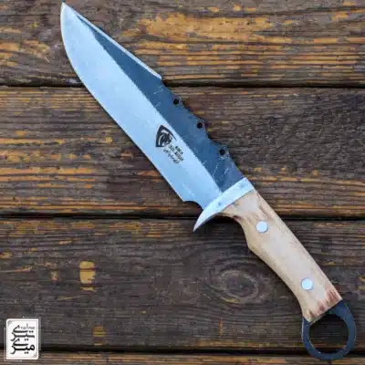دسته چوبی این چاقو با نقشهای سنتی، علاوه بر زیبایی ظاهری، ارگونومی مطلوبی دارد که حس راحتی و اطمینان را در استفاده طولانیمدت ایجاد میکند. این چاقو برای شکارچیان، طبیعتگردان و حتی مصرف خانگی انتخابی ایدهآل است